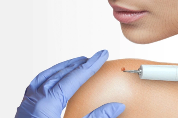 После процедуры на месте удалённой опухоли образуется корочка, которая отпадает спустя несколько дней, оставляя после себя едва заметное белое пятнышко. Со временем цвет кожи выравнивается.